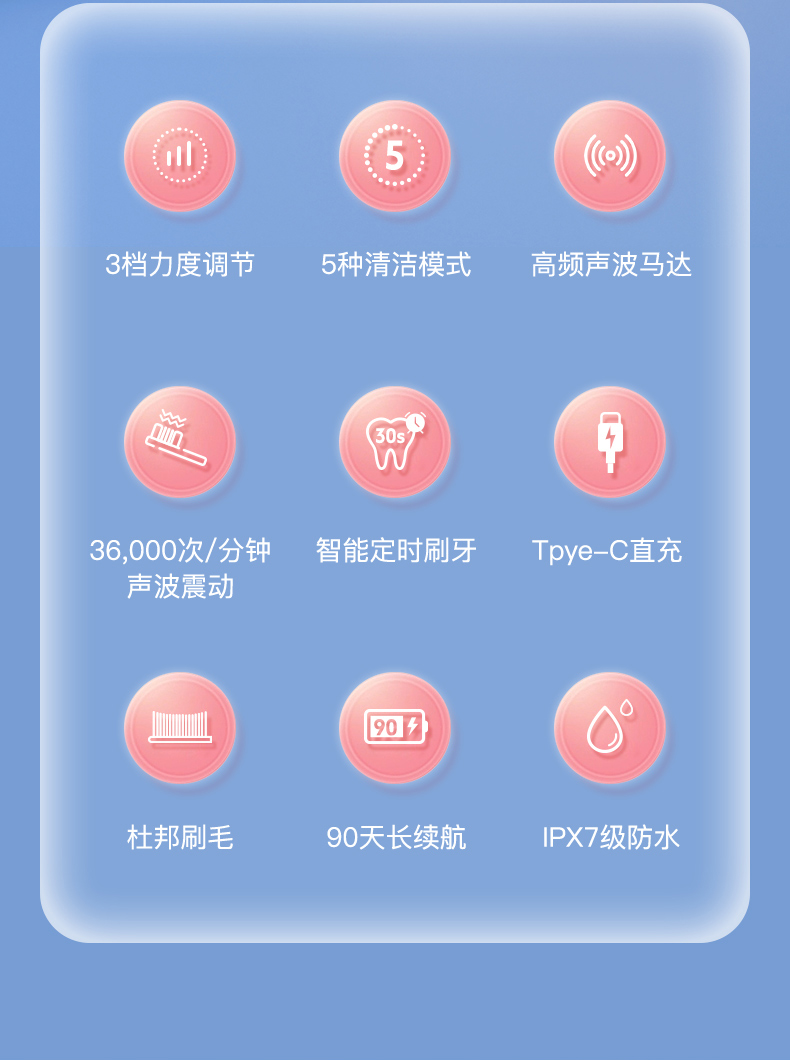 5、2分鐘智能刷牙,30秒換區(qū)刷牙,養(yǎng)成科學(xué)刷牙好習(xí)慣