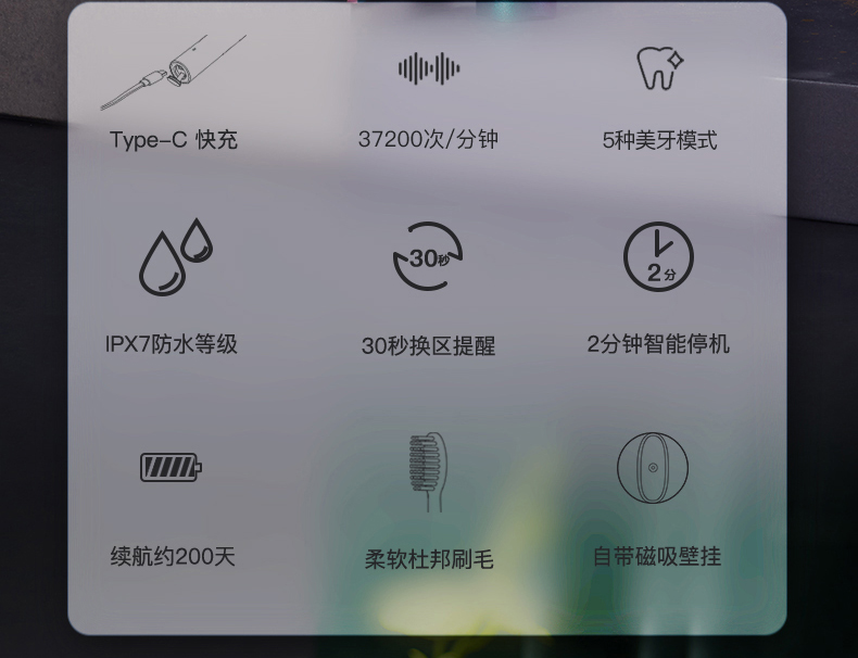 牙刷類型:磁懸浮聲波振動(dòng)
